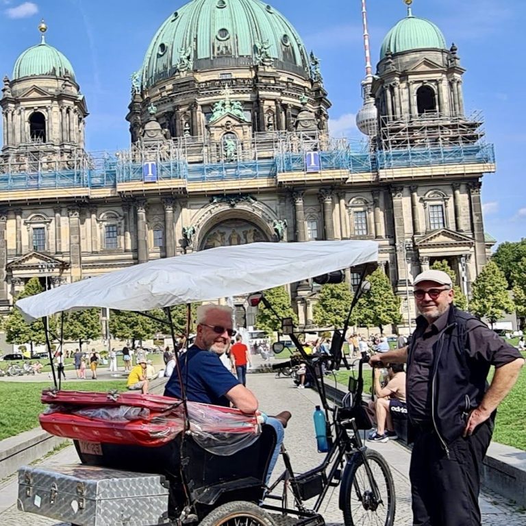 Mit der Rikscha durch Berlin: Die beste Art Berlin kennen zu lernen! Steigen Sie ein und lassen Sie sich von mir meine wundervolle Stadt zeigen, durch den schönen Tiergarten, an der Spree entlang oder direkt vor's Kanzleramt, mit der Rikscha gilt wahrhaft: mittendrin statt nur dabei! Bei einer Fahrt mit mir bekommen Sie nicht nur die herrlichen historischen Bauwerke Berlins zu sehen, Sie erfahren gleichzeitig die Hintergründe und Geschichten dazu, so bekommen Sie einen echten Einblick in die wechselvolle und überaus spannende Geschichte der Spreemetropole.